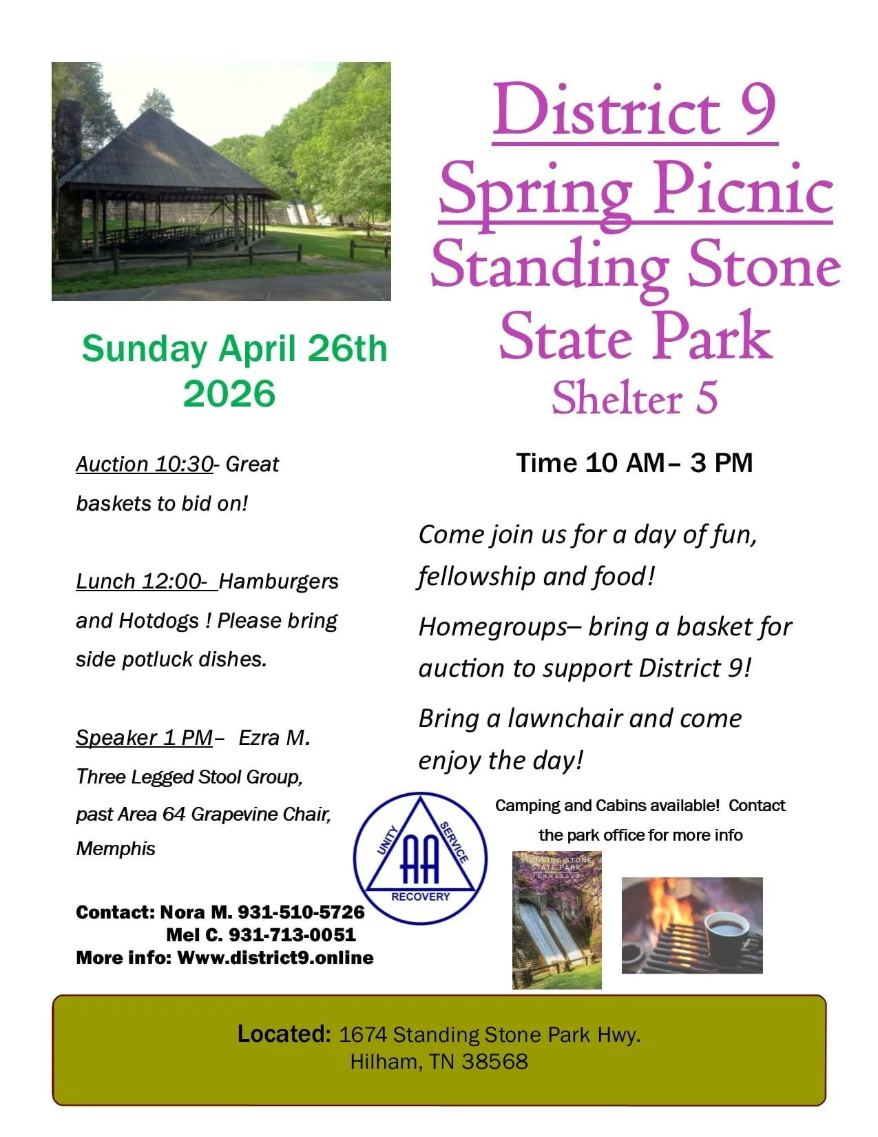 Next District 9 Meeting will be on April 12th @ 1pm at 122 S Madison Cookeville, TN. 38501